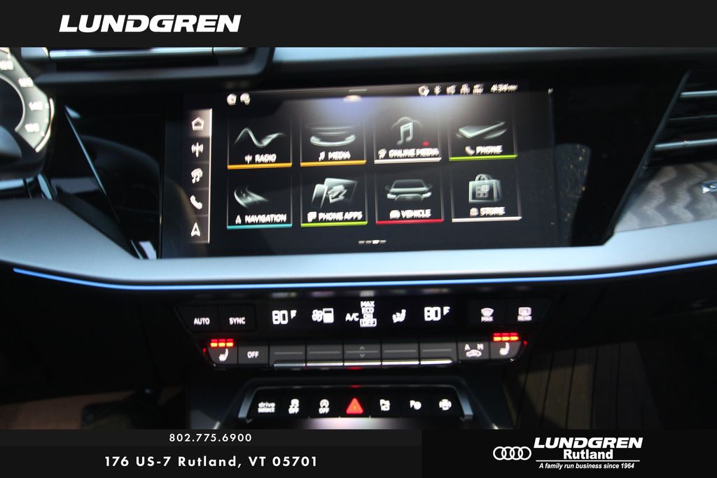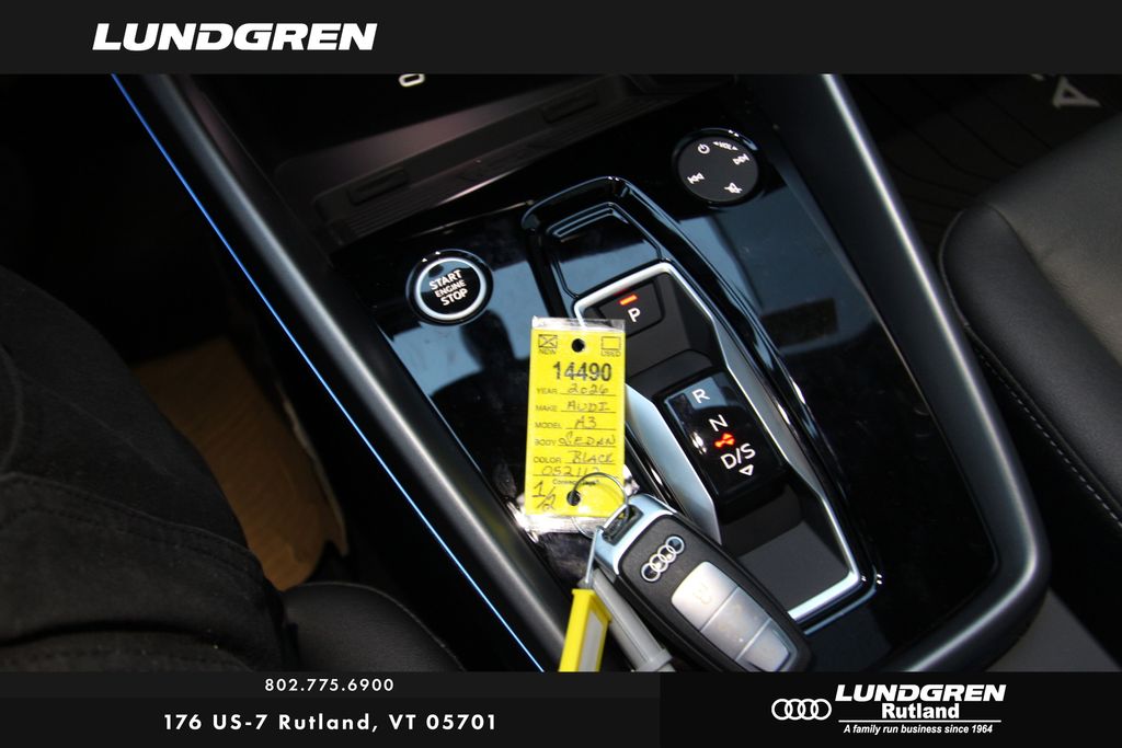 quattro 2026 Audi A3 quattro Recent Arrival! quattro brilliant black 7-Speed Automatic S tronic Black Optic Package (Anthracite Audi Rings, Black Exterior Trim, Sport Suspension (-15 Mm), and Wheels: 18" 5-Double-Spoke Design with Bicolor Finish), Convenience Package (Adaptive Cruise Assist, Audi Advanced Key, Auto-Dimming Interior Mirror w/Compass & HomeLink, Memory For Driver's Seat, SiriusXM with 360L, and Wireless Phone Charging Pad), quattro, Black Leather, 10 Speakers, 190 Watt 10 Speaker Audi Sound System, 4-Wheel Disc Brakes, ABS brakes, Air Conditioning, Alloy wheels, AM/FM radio, Audi Connect CARE, Audi Connect NAV and PLUS, Audi Guard All-Weather Mats, Auto High-beam Headlights, Automatic temperature control, Brake assist, Bumpers: body-color, Delay-off headlights, Driver door bin, Driver vanity mirror, Dual front impact airbags, Dual front side impact airbags, Electronic Stability Control, Emergency communication system: Audi connect CARE, Exterior Parking Camera Rear, Four wheel independent suspension, Front anti-roll bar, Front Bucket Seats, Front Center Armrest, Front dual zone A/C, Front reading lights, Fully automatic headlights, Genuine wood dashboard insert, Heated door mirrors, Heated Front Bucket Seats, Heated front seats, Illuminated entry, Knee airbag, Leather Seating Surfaces, Leather steering wheel, Low tire pressure warning, Navigation system: Audi MMI Navigation with Touch Response, Occupant sensing airbag, Outside temperature display, Overhead airbag, Overhead console, Panic alarm, Passenger door bin, Passenger vanity mirror, Power door mirrors, Power driver seat, Power moonroof, Power passenger seat, Power steering, Power windows, Radio data system, Radio: MMI Touch Display with 10.1" Touchscreen, Rain sensing wipers, Rear air conditioning, Rear anti-roll bar, Rear fog lights, Rear reading lights, Rear seat center armrest, Rear side impact airbag, Rear window defroster, Remote keyless entry, Security system, Speed control, Speed-sensing steering, Speed-Sensitive Wipers, Split folding rear seat, Steering wheel mounted audio controls, Tachometer, Telescoping steering wheel, Tilt steering wheel, Traction control, Trip computer, Turn signal indicator mirrors, Variably intermittent wipers, and Wheels: 17" 5-V-Spoke Design.