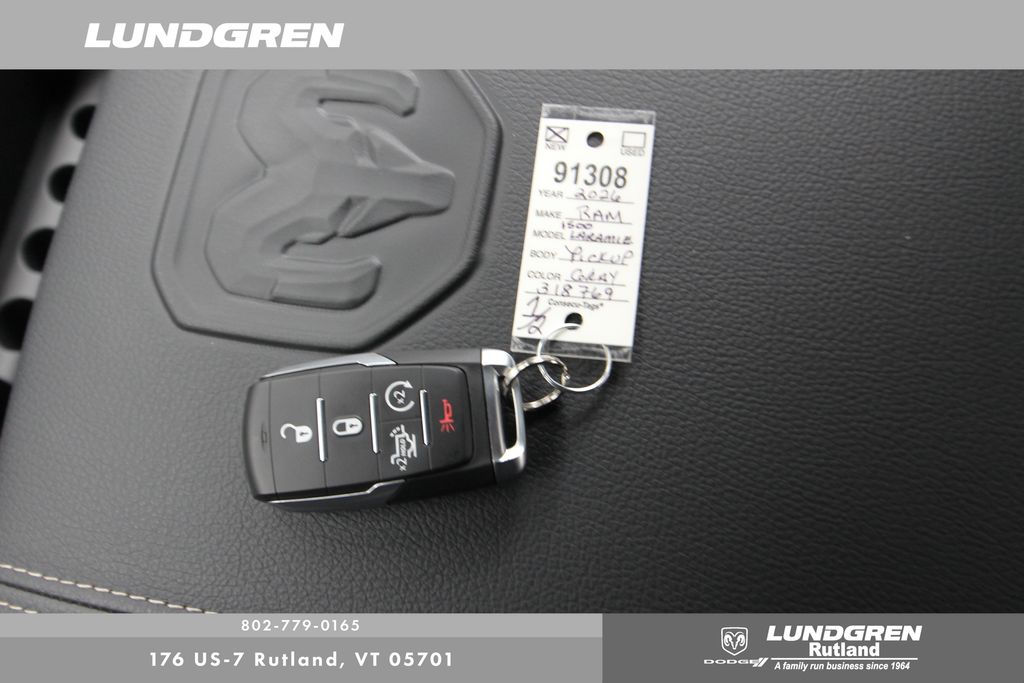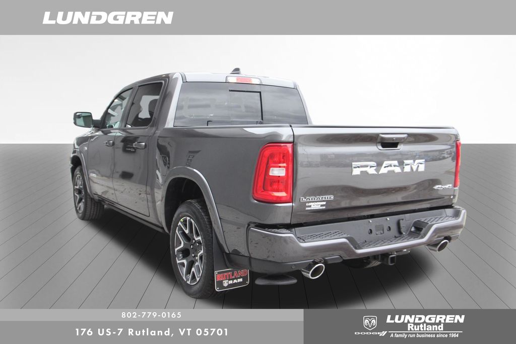 4WD 2026 Ram 1500 Laramie Recent Arrival! Granite Crystal Metallic Clearcoat 8-Speed Automatic Bed Utility Group (Exterior 115V AC Outlet, MOPAR 4 Adjustable Cargo Tie-Down Hooks, and MOPAR Spray in Bedliner), Laramie Level 1 Equipment Group (Rain Sensitive Windshield Wipers and Remote Tailgate Release), Laramie Preferred Package (Accent Color Premium Power Mirrors, Auto Power-Folding Mirrors, Auto-Dimming Exterior Driver Mirror, Black Painted Exterior Mirrors Caps, Body Color Front Bumper, Body Color Rear Bumper with Step Pads, Convex Wide-Angle Exterior Mirror Insert, Dome Dual LED Reading Lamp, Dual-Pane Panoramic Sunroof, Exterior Mirrors Courtesy Lamps, Exterior Mirrors with Heating Element, Exterior Mirrors with Memory, Exterior Mirrors with Supplemental Signals, Grille Surround 3 Body Color Tex 4 Chrome, LED Dome/Reading Lamp, Power Deployable Running Boards, RAM Grille Badge - Chrome, Tow Hooks, and Trailer Brake Control), Quick Order Package 27H Laramie, 10 Speakers, 4-Wheel Disc Brakes, 4G LTE Wi-Fi Hot Spot, ABS brakes, Active Noise Control System, Adjustable pedals, Air Conditioning, Alloy wheels, AM/FM radio: SiriusXM with 360L, Apple CarPlay/Android Auto, Audio memory, Auto High-beam Headlights, Auto-dimming door mirrors, Auto-dimming Rear-View mirror, Automatic temperature control, Brake assist, Bumpers: chrome, Chrome Exterior Mirrors, Compass, Connected Travel and Traffic Services, Connectivity - US/Canada, Delay-off headlights, Driver door bin, Driver vanity mirror, Dual front impact airbags, Dual front side impact airbags, Electronic Stability Control, Front anti-roll bar, Front Bucket Seats, Front Center Armrest w/Storage, Front dual zone A/C, Front fog lights, Front License Plate Bracket, Front reading lights, Front wheel independent suspension, Fully automatic headlights, Garage door transmitter, GPS Navigation, Heated door mirrors, Heated front seats, Heated rear seats, Heated steering wheel, Illuminated entry, Integrated Center Stack Radio, Integrated Voice Command with Bluetooth, Leather steering wheel, Leather Trimmed Bucket Seats, Low tire pressure warning, Memory seat, MOPAR Front and Rear Rubber Floor Mats, MyFlexCare Service Plan, Navigation System, Occupant sensing airbag, Off-Road Information Pages, Outside temperature display, Overhead airbag, Overhead console, Panic alarm, ParkView Rear Back-Up Camera, Passenger door bin, Passenger vanity mirror, Pedal memory, Power door mirrors, Power driver seat, Power passenger seat, Power steering, Power windows, Radio data system, Radio: Uconnect 5 Navigation with 12.0" Display, Rear anti-roll bar, Rear reading lights, Rear seat center armrest, Rear step bumper, Rear Wheelhouse Liners, Remote keyless entry, Security system, SiriusXM Radio Service, SiriusXM with 360L, Speed control, Split folding rear seat, Steering wheel mounted audio controls, Tachometer, Telescoping steering wheel, Tilt steering wheel, Traction control, Trip computer, Turn signal indicator mirrors, USB Host Flip, Variably intermittent wipers, Ventilated front seats, Voltmeter, and Wheels: 20" x 9" Premium Paint/Polish.